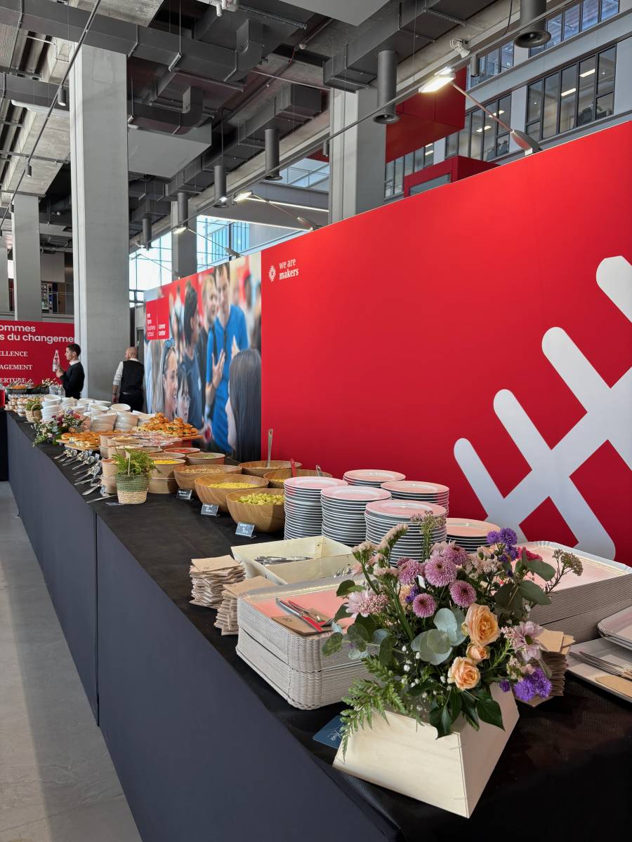 Sur trois jours, le Career Forum réunit 179 entreprises et 1 000 participants autour d’un enjeu de carrière. Accompagner un événement de cette taille représente un défi logistique et humain que notre équipe relève avec passion et expertise. Pour le Career Forum, nous avons imaginé une prestation complète, alliant convivialité, gourmandise et qualité maison :