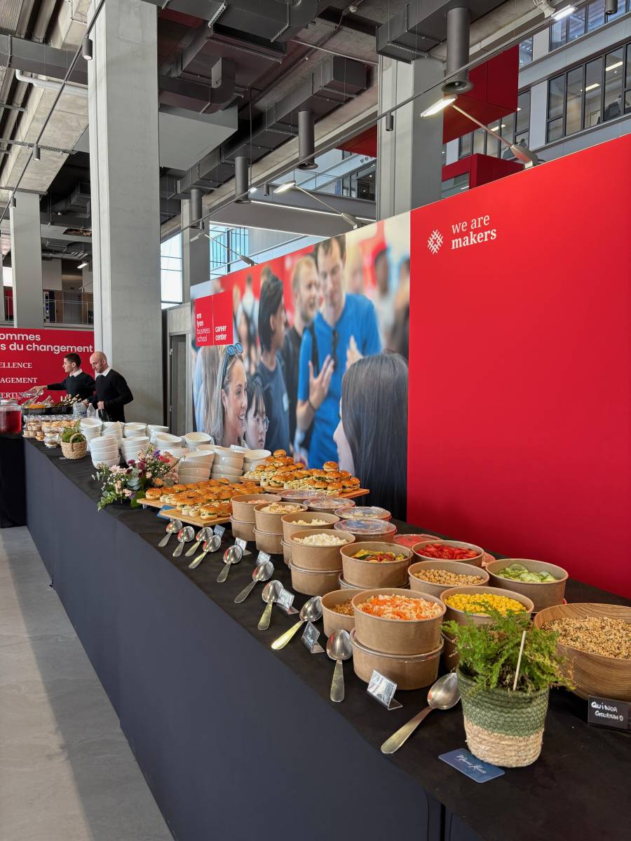 Chez Mamie Kocotte, nous sommes fiers d’accompagner les grands événements professionnels à Lyon. À l’occasion du Career Forum 2026 de l’EM Lyon Business School, nous avons eu l’opportunité d’être le traiteur officiel, en charge de l’ensemble des prestations de restauration pour cet événement majeur sur plusieurs jours.