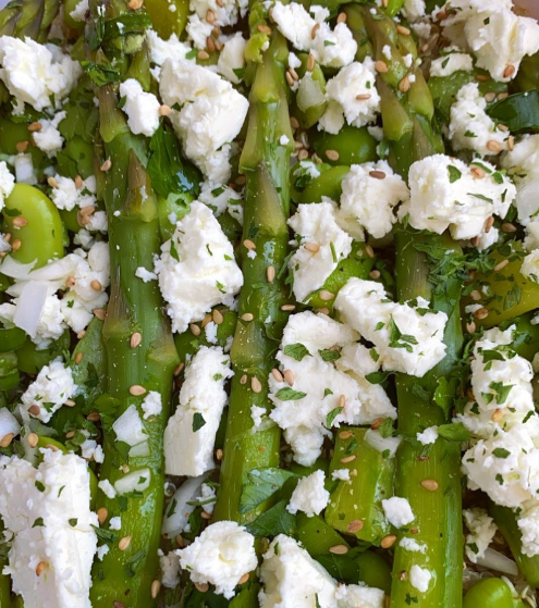 En entrée, les convives ont eu un taboulé printanier frais et parfumé, agrémenté de pointes d’asperges croquantes, de graines de sésame torréfiées et de féta fondante.